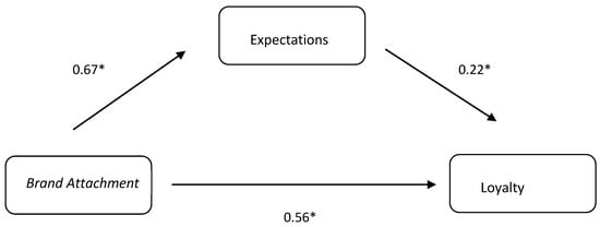 The aim was to assess the mediating role of satisfaction between the Brand Attachment variable and loyalty.
