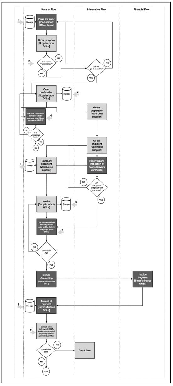 - For the buyer: correlating order/delivery note/invoice (point 7 of the current process) to match the document flow with the order and verify any billing discrepancies.