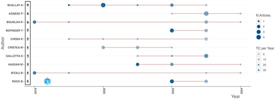 Table 1 displays the ten most cited authors in this field of research, their affiliations, total citations, and others based on Marín-Rodríguez et al. (2023). The authors are cataloged based on the total citations in the topic (TCT) to recognize the most prominent author in the banking industry and ESG issues corresponding to the number of citations in Scopus and WoS. Likewise, this study used Google Scholar to obtain the total global citation indicator (TGC), and a comparison was made with TCT by Bibliometrix in R, which added Scopus and WoS citations. The aim was to contrast the themes the authors recognized as more prominent. Later, related to TCT, Table 1 exhibits the top 10 most relevant authors researching the banking industry and ESG issues between 2003 and 2024.