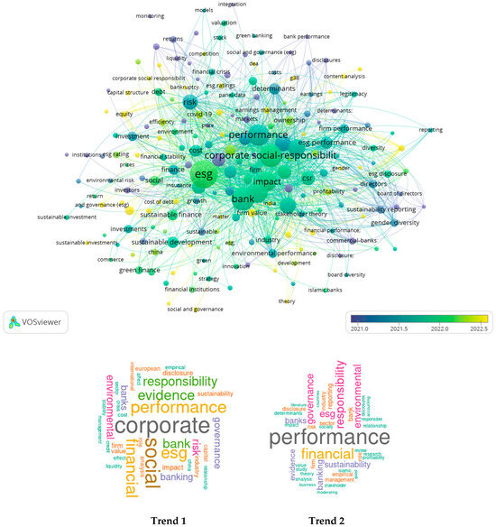 Analyzing the interrelationships between keywords and research trends in publications retrieved from Scopus and WoS databases concerning the banking industry and ESG issues. Source: elaborated by the authors using VOSviewer and Bibliometrix tools.