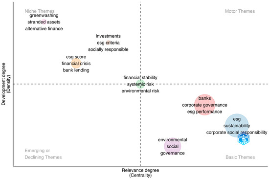 Future research directions in ESG integration within the banking industry may explore corporate governance and ESG performance. Likewise, although research on financial stability, systematic risk, and environmental risk are centrally positioned, highlighting their critical importance, their moderate development degree suggests that, despite their recognized essentiality, there remains significant scope for deeper exploration and practical implementation. Further development, from practitioner and academic perspectives, could result in more effective risk management and greater stability within the banking sector. On the other hand, comparative studies across diverse banking sectors and regions hold promise for providing valuable insights into the drivers and barriers of ESG integration.
