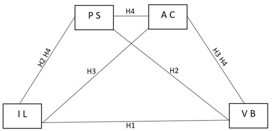 Conceptual model. IL = inclusive leadership; PS = psychological safety; AC = affective commitment; VB = voice behaviour.