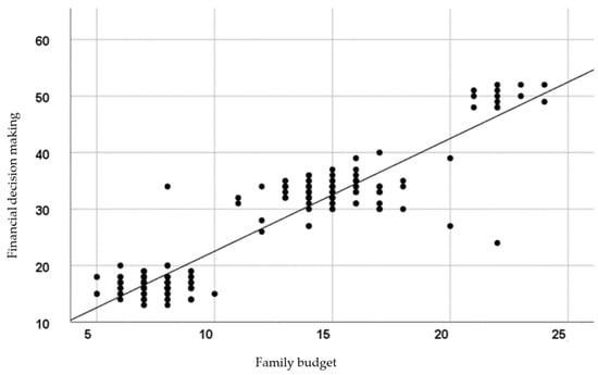 Scatter diagram between family budget and decision-making.