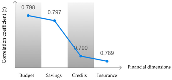Findings of the study re-affirm the significance of financial literacy as a means of strengthening the micro-entrepreneurs’ decision-making, arguing for its significance in handling money and various financial concepts as well as boosting entrepreneurs’ business performance. This is especially important for such individuals, most of whom invest their money in risky business ventures with little capital investment. The study also holds that every working financial literacy model must inter-connect the household/budget and business finance. Nevertheless, some limitations to the research are worth noting. It targets only the Province of Chanchamayo, and so the current study results may not be extended to other regions or counties. Moreover, this study is cross-sectional, which inhibits drawing causal relationships; also, the data were self-reported. However, there is a requirement of an extended theoretical model that involved personal financing and business financing to support the economic growth issues above. From a practical point of view, the study recommends the necessity of designing intervention programs to improve the financial literacy of micro-entrepreneurs, which should involve cooperation between universities, governmental agencies, and businesses focused on the improvement of the literacy level of the population and on the micro-entrepreneurs level in particular. In other words, this research explores the relationship between various financial dimensions and decision-making in micro-entrepreneurs, revealing a significant positive correlation in several key aspects. First, a strong correlation was identified between the family budget and decision-making, with Spearman’s Rho correlation index of 0.798 and a p-value of 0.000, supporting the acceptance of the alternative hypothesis. Such findings correspond with the research (Gabriel et al., 2020), who point to the significance of proper financial decisions for dealing with daily issues by stressing the family background and culture as the aspects influencing financial literacy. Likewise, a positive correlation was found between savings and decision-making, with an index of 0.797 and a p-value of 0.000. According to ref. (Rutkauskas & Stasytytė, 2022), the managers should assess the financial opportunities and design the saving and investment portfolio, which may be necessary in some sectors like hardware. As for the credit indicator, the correlation coefficient is equal to 0.790, which agrees with (Abdul kareem et al., 2023) and (Du & Shen, 2024) on the matter of the role of managing credits in business profitability. Financial literacy that addresses investment and credit histories and other areas important for saving and proper decision-making is relevant. Finally, a positive correlation was observed between insurance and decision-making, with an index of 0.789. Ref. (Carhuavilca & Zegarra, 2021) highlights the need for informed financial decisions in the daily operations of micro-entrepreneurs, emphasizing the importance of financial skills to manage risks prudently (Figure 6).