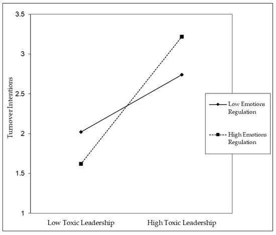Only the mediating effect of emotions and emotion regulation on the relationship between toxic leadership and turnover intentions was proven. However, the relationship was inconsistent with the results reported in the literature since participants with high levels of emotion use and emotion regulation have higher turnover intentions than those with low levels of emotion use and emotion regulation when they perceive their leader as toxic.