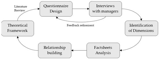For the data analysis, an abductive approach was utilized. Abductive research facilitates the creative generation of hypotheses based on the complex and unexpected relationships observed (Timmermans & Tavory, 2022). The analysis followed an iterative process to develop a theory explaining the relationships between the three dimensions. After conducting the initial interviews, the questions were refined for more precise data collection. Empirical observations were categorized into fact sheets, which helped organize the data and identify patterns. These fact sheets were then used to build and analyze the relationships between the dimensions, allowing for continuous refinement of both the interview process and the emerging theory. Figure 2 summarizes the research process followed: