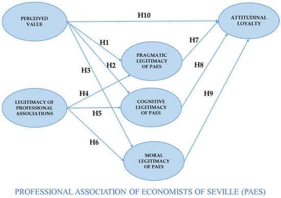 To answer these questions, this research conducted an online survey that was responded to by members of the Professional Association of Economists of Seville (PAES). The method of partial least squares structural equation modeling (PLS-SEM) was applied to examine how perceived value shapes the legitimacy of the PAES and its direct impact on the attitudinal loyalty of its members. To this end, the research also explored the findings related to organizational legitimacy, focusing on its three key types: pragmatic, moral, and cognitive. Furthermore, it postulates that the legitimacy of a specific professional association (i.e., the PAES) will be conditioned by the legitimacy accorded to professional associations in general. Therefore, a negative perception of the legitimacy of professional associations may infect the perception of a specific professional association and negatively affect the attitudinal loyalty of its members.