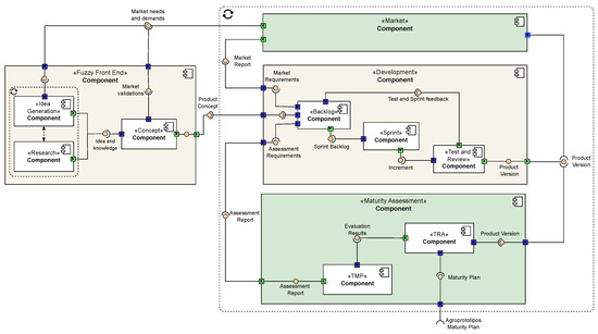 Figure 2 presents the proposed method via a component diagram that details the FFE and Development Stage Components as well as the Maturity Assessment Transversal Component, aiming to enable effective technology transfer from Academia to Industry. In this regard, the FFE Stage Component can be performed by integrating academic research with market opportunity analysis, ensuring that concept generation aligns with real-world needs and requirements. The Development Stage Component can be performed using the Agile Scrum methodology, combined with a continuous market orientation and maturity assessment based on TRL. Scrum is an agile approach that fosters responsiveness to evolving requirements, enhances stakeholder communication, and promotes cross-functional collaboration Meso and Jain (2006). The Maturity Assessment Transversal Component can be realized through the TRL framework, which offers a standardized and straightforward method for assessing and communicating innovation maturity Olechowski et al. (2020). The following sections outline how to conduct FEE, Development, and Maturity Assessment.