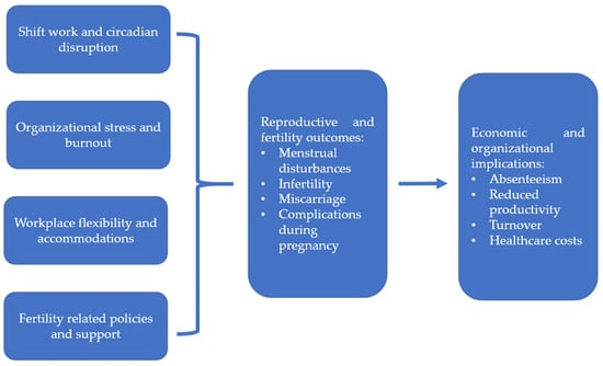 Background/Purpose: Reproductive health and fertility outcomes are essential but often overlooked aspects of occupational well-being. Organizational dysfunction, demanding workloads, and limited workplace accommodations may negatively affect fertility, while supportive policies and inclusive cultures can mitigate risks. This review aimed to map current evidence on these relationships and their economic consequences. Methodology/Approach: A scoping review was conducted using the PCC (Population–Concept–Context) framework. Systematic searches across multiple databases identified 30 eligible studies, including quantitative, qualitative, and mixed-method designs, spanning different sectors and international contexts. Findings: Four main domains emerged: shift work and circadian disruption, organizational stress and burnout, workplace flexibility and accommodations, and fertility-related policies and organizational support. Hazardous working conditions, long hours, and psychosocial stressors were consistently associated with impaired fertility, reduced fecundability, and pregnancy complications. Conversely, flexible scheduling, fertility benefits, and supportive organizational cultures were linked to improved well-being, retention, and productivity. Originality/Value: This review integrates evidence across occupational health, organizational psychology, and labor economics, offering a comprehensive overview of workplace influences on reproductive health. It highlights gaps in equity and representation—particularly for men, LGBTQ+ employees, and workers in precarious jobs—and calls for longitudinal, interdisciplinary, and intervention-based studies to inform effective workplace policies. Full article
