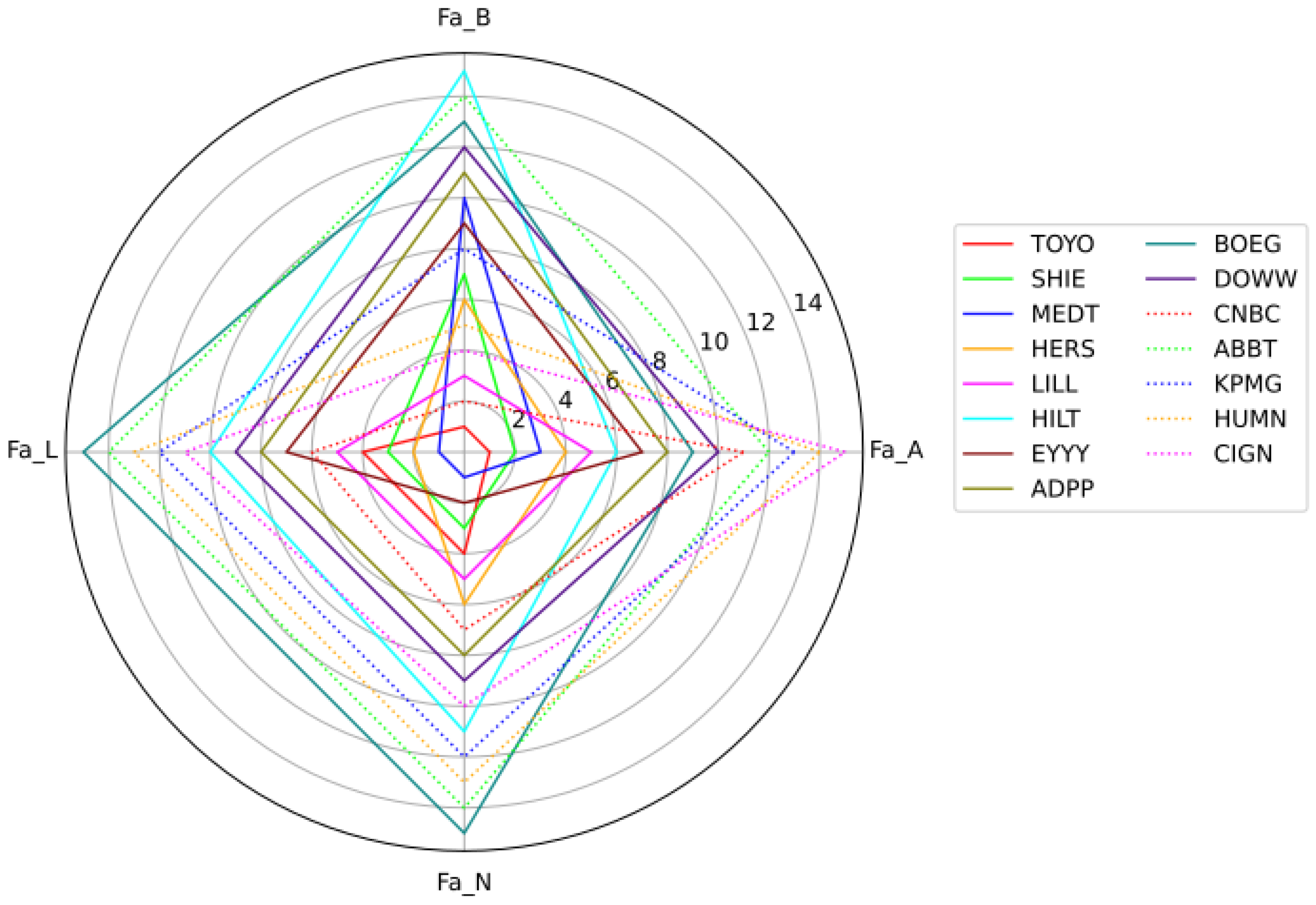 Companies | Fa_D | Fo_D | Gl_D | Companies | Fa_A | Fa_B | Fa_L | Fa_N | Companies | Fo_D | Fo_W | Fo_G | Fo_L | Fo_V |