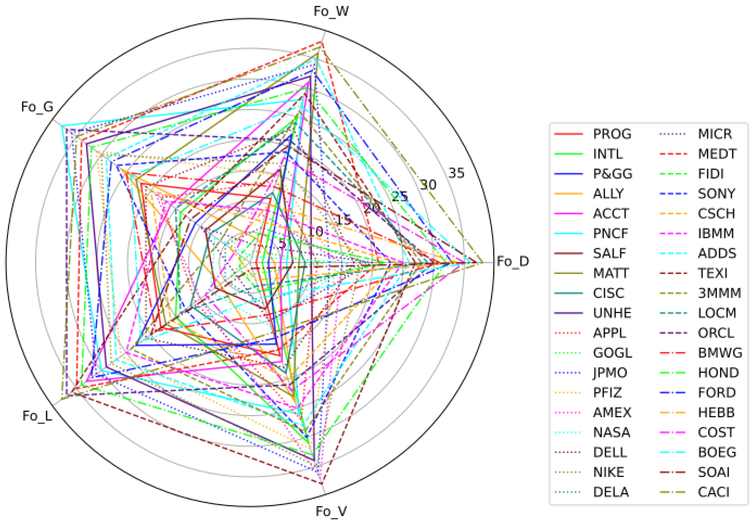 G.C | [GOGL, FIDI, HEBB, DELA, SALF, NASA, MICR, PROG, ALLY, CISC, COST, SOAI, P&GG, APPL, LOCM, INTL, ACCT, AMEX, CSCH, DELL, MATT, IBMM, BMWG, SONY, 3MMM, BOEG, PFIZ, NIKE, PNCF, FORD, ADDS, HOND, UNHE, JPMO, MEDT, TEXI, ORCL, CACI] | 2715 |