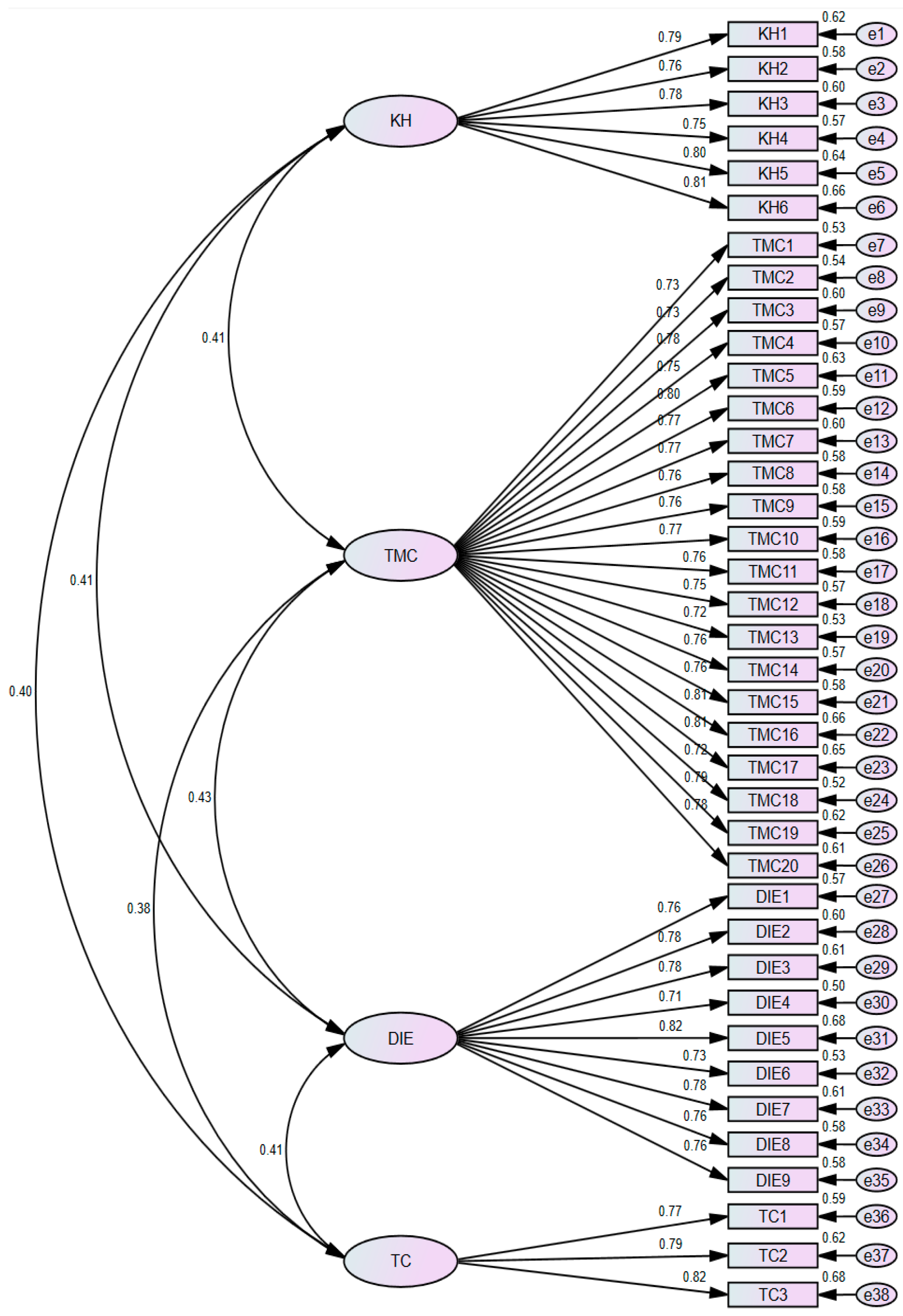 One-factor model: (KH + TMC + DIE + TC) | 3.57 | 0.11 | 0.66 | 0.66 | 0.64 |