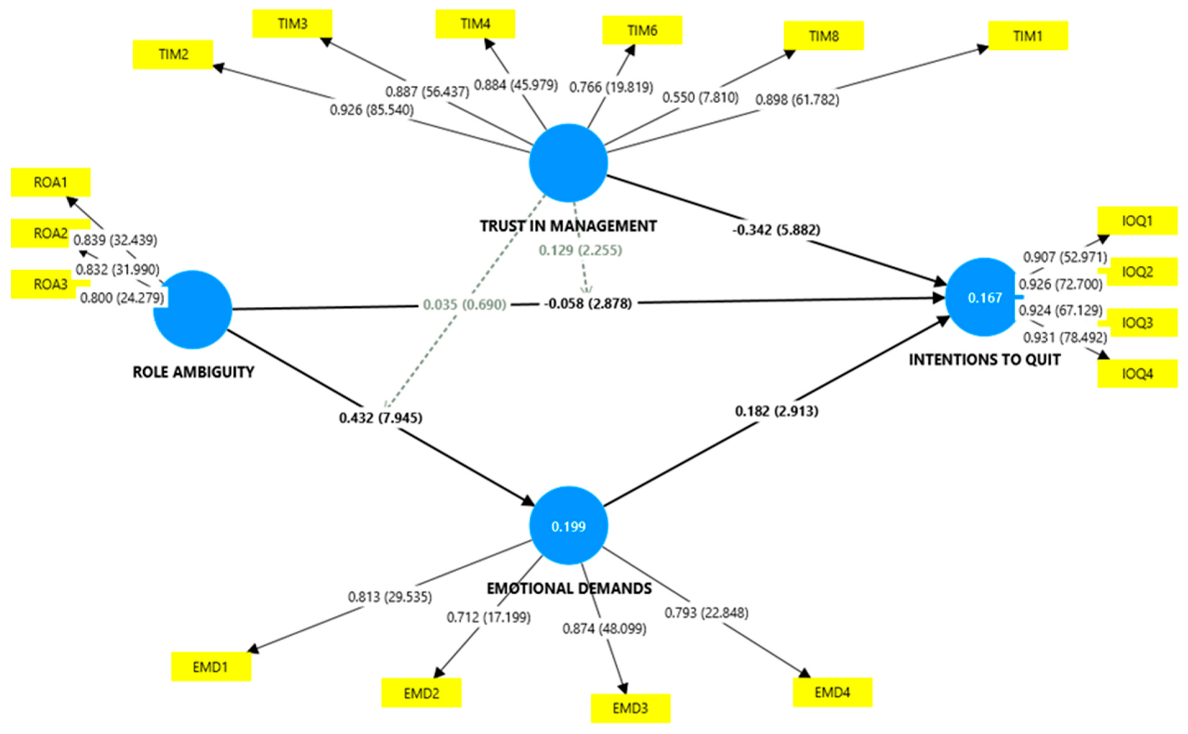 Khumalo, N.; Olaleye, B.R. Emotional Demands and Role Ambiguity Influence on Intentions to Quit: Does Trust in Management Matter? Adm. Sci. 2025, 15, 424. https://doi.org/10.3390/admsci15110424