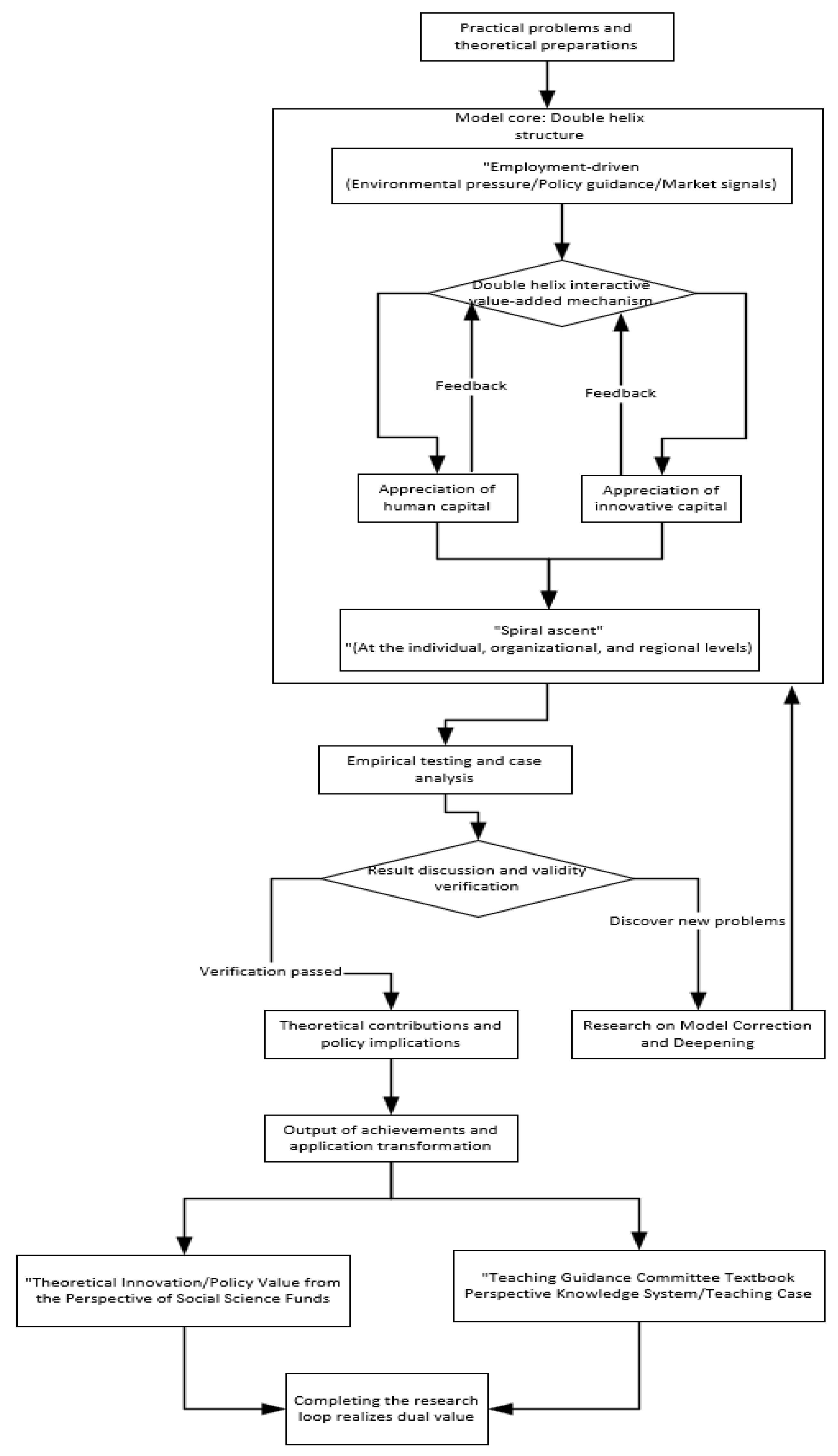 2.2. Core Concept Framework: The Dual Spiral Value Model of Human Capital and Innovation Capital Under “Employment-Driven”