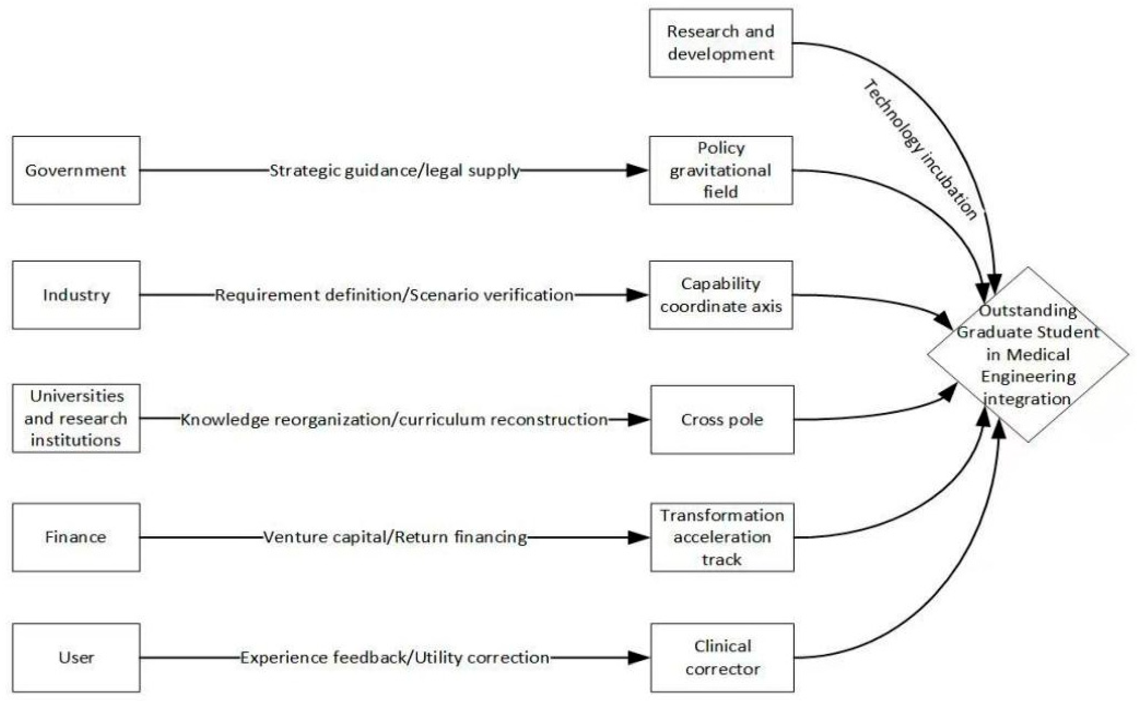 | Universities and Research Institutes (E/R) | Knowledge Reconstruction and Basic Innovation Pole | Knowledge Capital and Intellectual Capital: They break down disciplinary barriers, reconstruct interdisciplinary curriculum systems, and provide support for cutting-edge basic research as well as guidance from high-level mentors. |