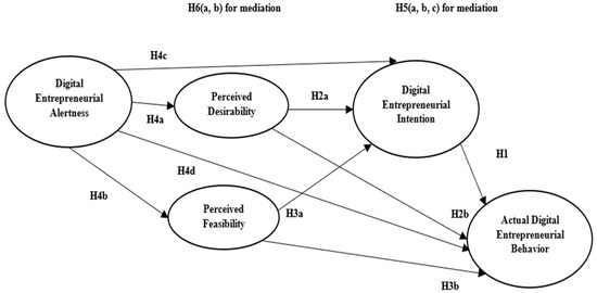 Alhajri, A.F.; Aloulou, W.J.; Althowaini, N.A. From Entrepreneurial Alertness to Commitment to Digital Startup Activities: A Mediation Model of Perceived Desirability, Feasibility, and Intentions. Adm. Sci. 2025, 15, 432. https://doi.org/10.3390/admsci15110432