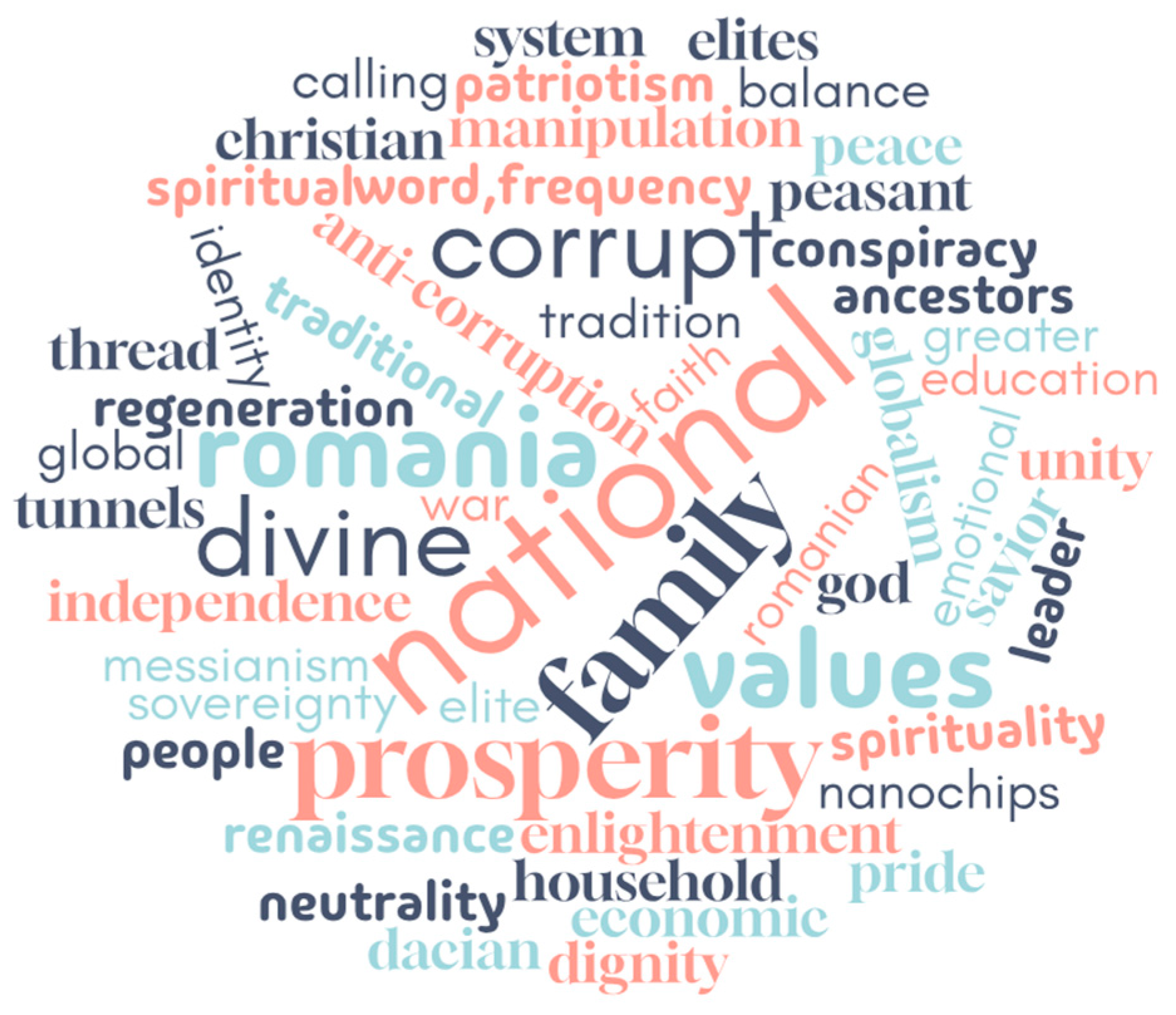 From this analysis, it can be deduced that the candidate’s text was strategically constructed to appeal to the values, needs, and aspirations of the Romanian electorate. The repetitive use of terms such as ‘sovereignty’, ‘democracy’, ‘freedom’, and ‘participatory’ suggests a deliberate rhetorical strategy aimed at psychological resonance with the target audience. These linguistic choices are not coincidental but instead reflect ideals deeply rooted in Romania’s social and cultural consciousness. The discourse was thus structured empirically, based on an understanding of collective psychology, to convey messages that respond simultaneously to social issues and to the population’s aspirations (