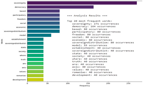 This study uses natural language processing (NLP) techniques to analyze the political discourse of the surprise presidential candidate, focusing on linguistic patterns, sentiment distribution, and recurring themes. This study addresses the problem of how TikTok virality and algorithmic amplification mechanisms can influence electoral outcomes in Romania, analyzing whether heuristic boosting strategies can distort traditional political paradigms. The text corpus included over 3915 words extracted from the candidate’s speeches, with the most frequent terms being “sovereignty” (271 occurrences), “democracy” (164 occurrences), and “freedom” (80 occurrences). The analysis revealed that 57.8% of the content was neutral, 10% conveyed positive sentiment, and negative sentiment was absent. A word frequency analysis highlighted the candidate’s strategic emphasis on concepts related to national identity and participatory democracy. Sentiment analysis revealed an intentional use of neutral language to maintain balance, with occasional positive terms maintaining confidence and optimism among voters. Full article