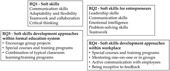 Figure 2 presents soft skills whose importance has been emphasized for entrepreneurs. Future research should focus on exploring the impact of proposed ways for soft skills development in the formal education system and in the workplace on employees’ soft skills level.