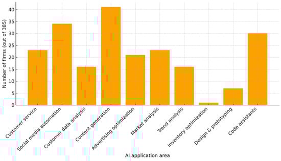Each application was presented in a dichotomous format (yes/no) to ensure clarity and comparability across firms. To enhance analytical richness and move beyond simple binary reporting, responses were subsequently combined into a continuous Artificial Intelligence Adoption Intensity Indicator (IIIA)—a composite measure capturing both the breadth (number of functions) and the depth (number of tools) of AI adoption within each firm. Respondents were also invited to specify the exact platform or tool employed (e.g., ChatGPT, HubSpot AI, Google Ads AI). The survey did not request or record specific software versions, as this information was not essential to the analysis.