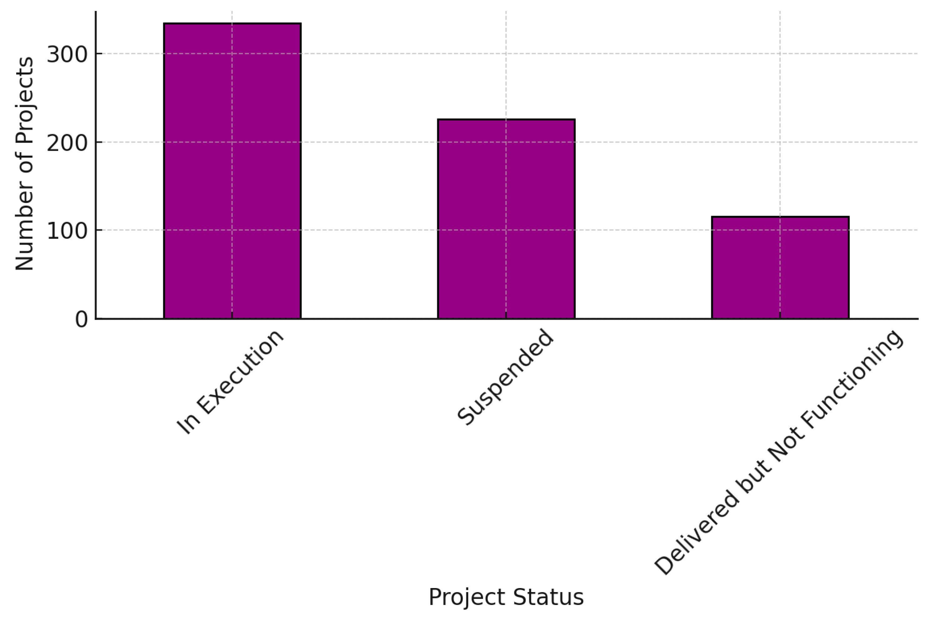 The prevalence of suspended and non-operational projects reflects institutional deficits in information flow and monitoring, precisely the type of governance failures that participatory oversight seeks to correct by incorporating citizen-generated risk signals.