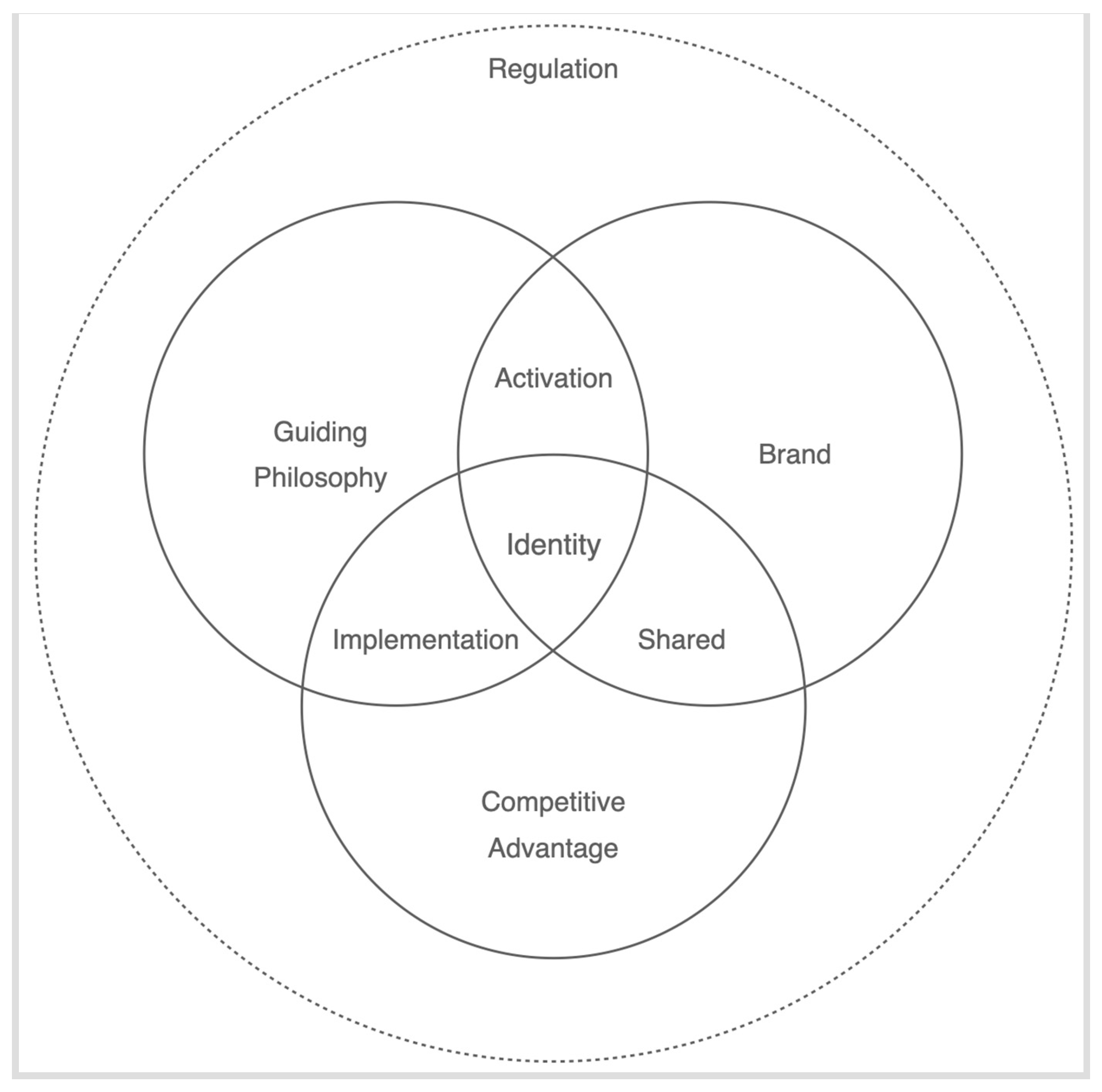 In the shared purpose dimension, the key perspective is to consider purpose not just as a static element inside organisations but as something generated in and with society (Biraghi et al., 2020) to find solutions to humanity’s great challenges (Kim & Scheller-Wolf, 2022). This requires deep thinking, engagement, and alignment on a cultural level (Kramer, 2017). Consumers see brands as instruments for advocating social change, and firms are evolving their approach, engaging social movements for improved relevance (Gray et al., 2024). For Biraghi et al. (2020), this is societal corporate branding, a key success factor of competitiveness. Corporations should participate in their community, contributing according to the principle of subsidiarity at social and political levels (Aßländer & Curbach, 2014). Brands should engage in co-creation initiatives (Kristal et al., 2020) because brand communities are places of aggregation and alignment of values and practices (Muniz & O’Guinn, 2001) and partnership (von Ahsen & Gauch, 2021). For Kristal et al. (2020), corporate brand identity is a dynamic entity in constant evolution due to the relationships within different ecosystem types (Törmälä & Gyrd-Jones, 2017; Dahlmann et al., 2020). For Bhattacharya et al., exchanges between business and society metaphorically shape rights, duties, and, most of all, purpose (Bhattacharya et al., 2009), which is considered an ecosystem type (Lankoski & Smith, 2018). This space includes studies on organisation stewardship of the future (Bebbington & Rubin, 2022). For Iglesias et al. (2023), Conscientious Corporate Brands are created by engaging with business partners, while Temporary Organisations must acquire the right organisational level capabilities to strategically align internal and external partners and achieve good performance (Ford & Friesl, 2019). Among them, inclusive decision making refers to the firm’s ability to engage stakeholders in the firm’s strategic process (Bernstein et al., 2020). This type of collaboration creates different identity meanings from various interactions between managers and the community (Essamri et al., 2019).