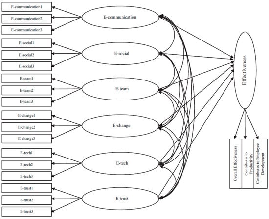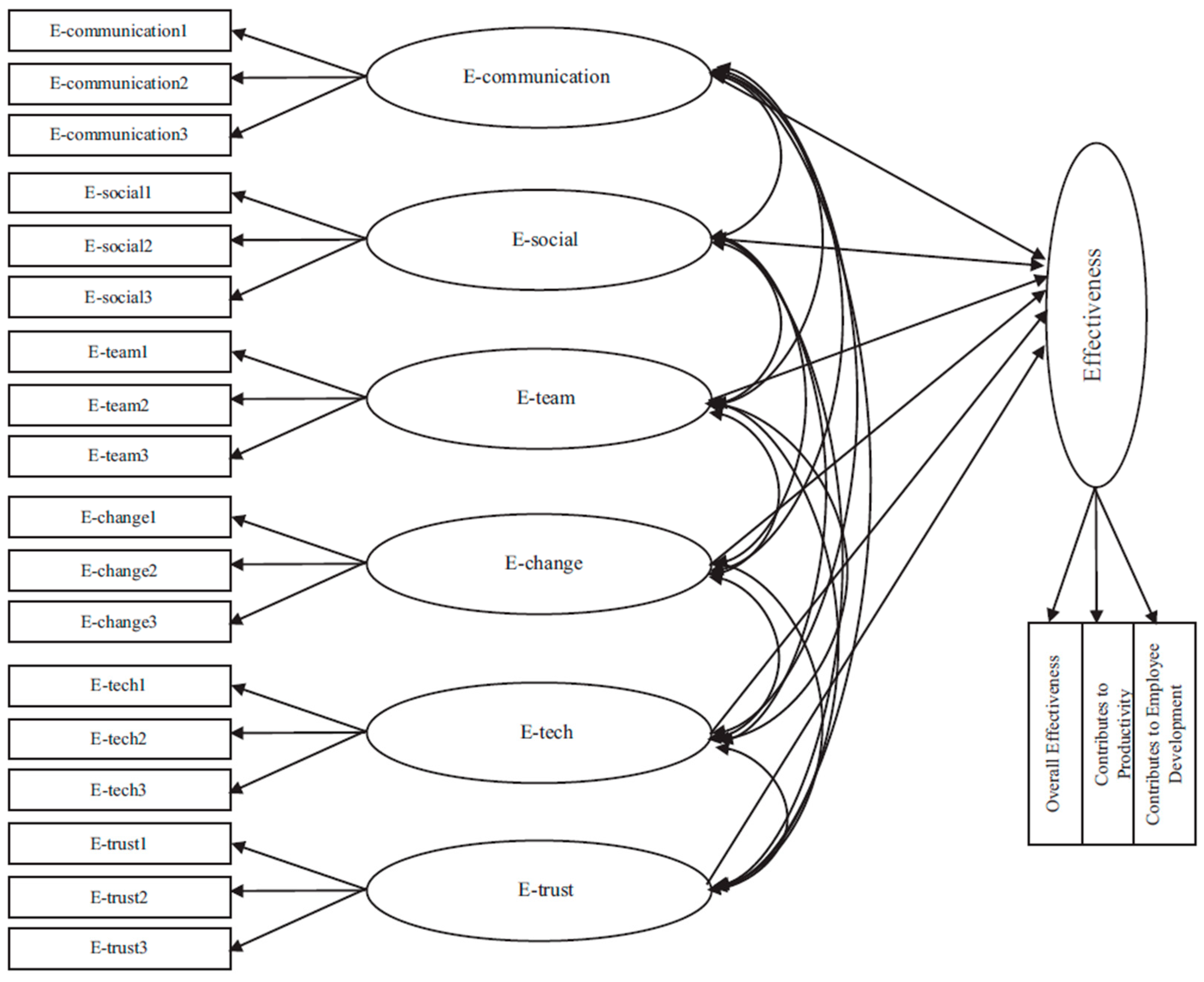 The E-Team dimension, associated with the e-leader’s ability to build and maintain cohesive and motivated teams, also showed a positive and significant relationship with e-leadership effectiveness (