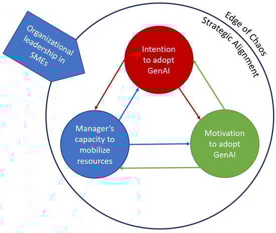 Figure 1 illustrates this complex system, placing strategic alignment as a key enabler that connects individual perceptions (TAM), motivational urgency (TMT), and internal capabilities (RBV). This holistic framework supports the interpretive analysis of SME leadership behaviors, offering deeper insight into the nonlinear nature of GenAI adoption.