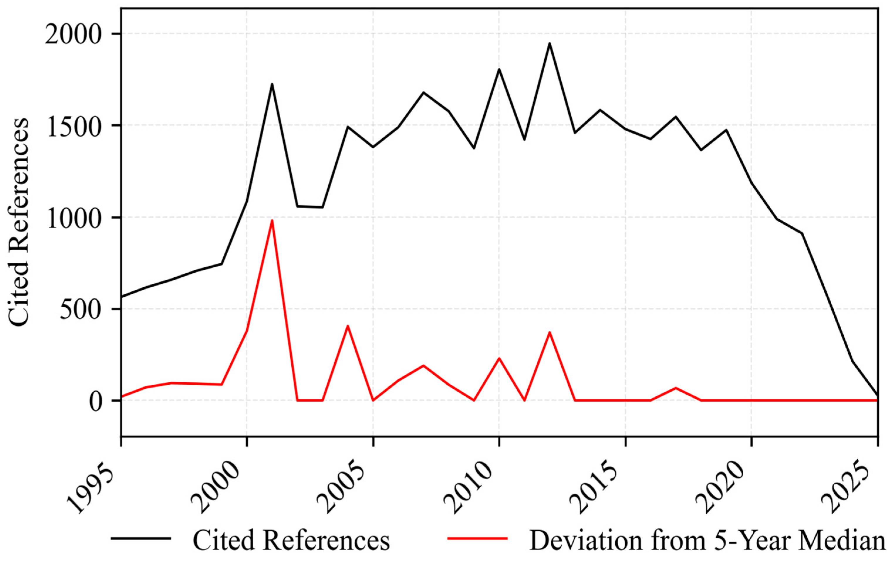 For the bibliometric analysis, we employed the Bibliometrix package (v4.3.0) in R, complemented by the Biblioshiny web interface, to systematically examine publication trends, citation dynamics, co-authorship networks, keyword co-occurrence structures, and related analyses. To enhance visualization and capture temporal patterns, OriginPro 2024b was used to generate detailed time-series plots of annual publication outputs and citation dynamics, while Python 3.10.5, with libraries such as Pandas, Matplotlib, and Seaborn, facilitated data preprocessing and the creation of customized visualizations. This multi-tool framework ensured a visually coherent representation of complex bibliometric data.