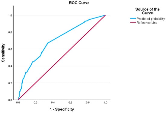 A ROC curve is a graphical figure that shows how well the binary classifier model performs at different threshold levels (Figure 1). The variables VR_education, VR_entertainment, VR_MKCOMP, and CB_MK_VR jointly projected the VR with an AUC of 0.704. The discrimination is deemed acceptable if 0.7 ≤ ROC < 0.8 (Hosmer et al., 2013). As a result, this regression model provides moderate discrimination capacity, with room for improvement in sensitivity and specificity.