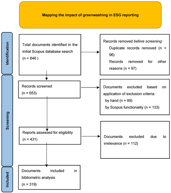 | 10 | ((“corruption” OR “fraud” OR “controversies” OR “money laundering”) AND (“corporate washing” OR “greenwashing” OR “bluewashing” OR “pinkwashing”) AND (“ESG” OR “sustainability” OR “sustainable development” OR “circular economy”) AND (“climate risk”)) AND (LIMIT-TO (PUBSTAGE, “final”) OR LIMIT-TO (PUBSTAGE, “aip”)) AND (LIMIT-TO (SRCTYPE, “j”)) |