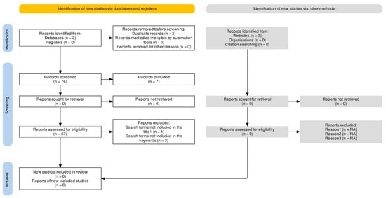 This review was conducted in accordance with the Preferred Reporting Items for Systematic Reviews and Meta-Analyses (PRISMA) (Lai et al., 2022). The searches were carried out using the 3 electronic databases (Elsevier, Wiley, and Google Scholar), where 76 studies were identified to meet the criteria we had set after the screening process (Figure 1, PRIMA diagram). The main reasons for their exclusion after the study of their content were the search terms not being included in the title (N = 1), the search terms not being included in the keywords (N = 2), and that they were duplicates (N = 3).