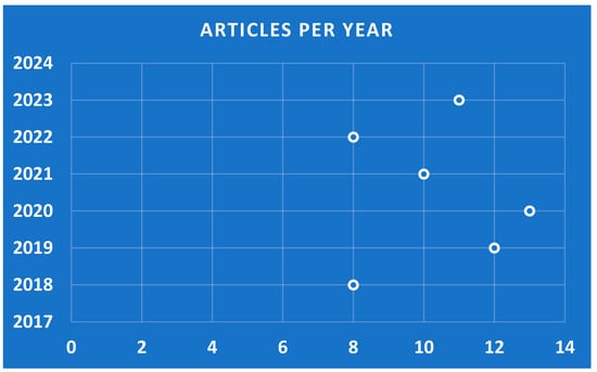According to Figure 2, the majority of the publications occurred in 2020 (N = 13) and 2019 (N = 13), while fewer papers were published in the next two years. This indicates that this area of research remains of constant interest.