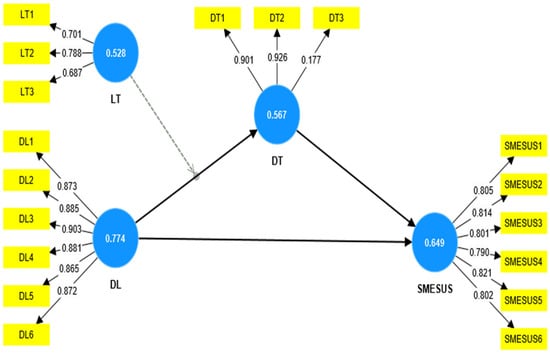 The study demonstrated that digital transformation partially mediates the relationship between digital leadership and sustainability. This suggests that while digital leadership directly impacts SME sustainability, its full potential is realized when combined with the strategic integration of digital transformation. This finding aligns with the work of previous researchers who emphasize the synergistic relationship between leadership and digital transformation in enhancing business sustainability. It could also be narrated from the results at hand that the analysis demonstrated that digital transformation plays a partial mediating role in the relationship between digital leadership and SME sustainability. This implies that digital leadership not only has a direct impact on the sustainability of SMEs but also influences it indirectly through the processes and strategies associated with digital transformation. In other words, the integration of digital transformation amplifies the effectiveness of digital leadership in achieving sustainable outcomes for SMEs. To put it simply, digital leadership becomes more impactful and influential when supported by digital transformation approaches, which enhances the ability of SMEs to maintain and improve their performance over time in a competitive and ever-changing business environment.