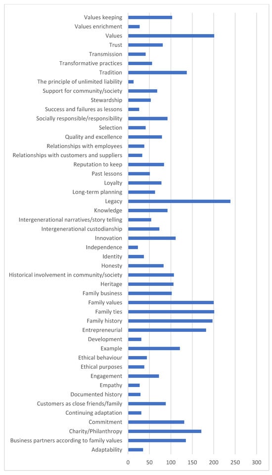 The legacy of values in a family business contributes to the overall success and longevity of the enterprise. Our data show that values are not only inherited principles but are deeply encoded within the narrative and present practices of family businesses.