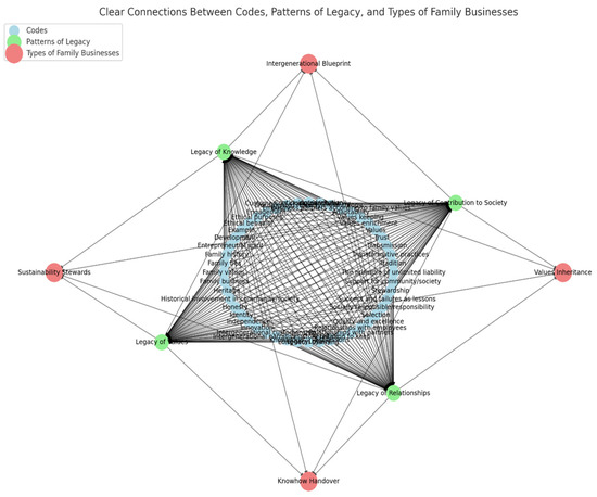 Connections between codes, patterns of legacy, and types of family businesses (image is AI-generated).