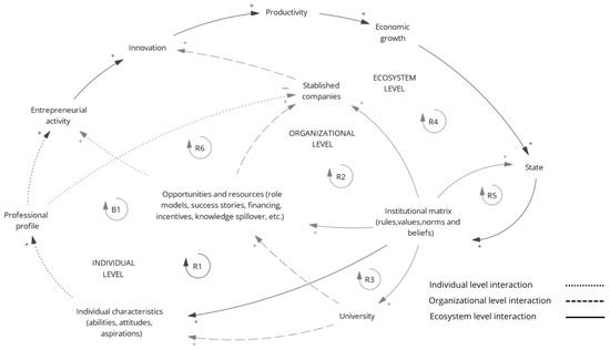 Causal model of relationships in the entrepreneurship and innovation ecosystem.