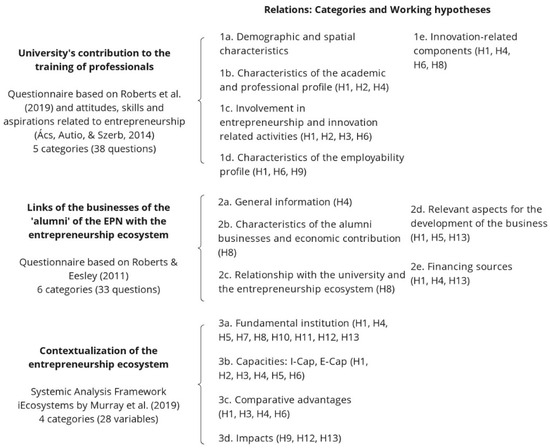 Variables included in the questionnaire, categories, and their relationship with the working hypotheses are shown in Figure 4.