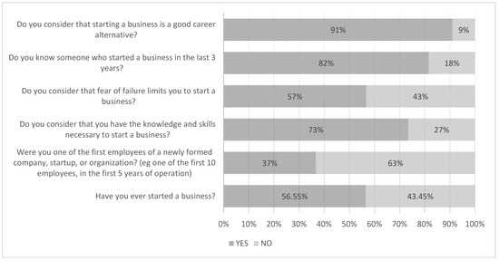 Previous entrepreneurial experiences influence attitudes, perceptions, and intentions to start a business (Castro & Zermeño, 2020; Guerrero et al., 2020; Soria-Barreto et al., 2017).
