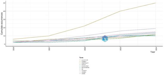 Usage trend of the main keywords 2020–2024 (source: biblioshiny).