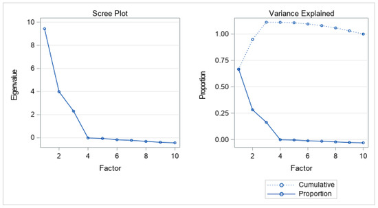 Based on the results observed for a three-dimensional hypothesis test, it is possible to conclude that there would be an adequate sample size (KMO = 0.7392) and consistency between the theoretical and empirical four factor structure [χ2 (18) = 7.9040, p = 0.98]. In this context, according to the criteria stated by O’Rourke and Hatcher (2013), the global reliability with the Tucker–Lewis method is 1.00, and the validity of the factors (through quadratic canonical correlations) would be 0.94 (LVQ), 0.87 (DQ), and 0.79 (IPWB). In turn, Figure 3 shows that the final estimates of the variance would be 72.19%.