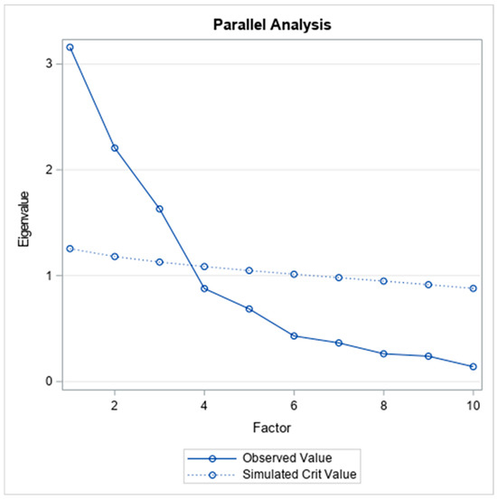 In turn, the Multifactorial Questionnaire of Psychological Well-being (Ryff, 1989) is an instrument that was standardized in Chile by Véliz (2012), which reported internal consistency indices (Cronbach’s α) by the dimensions of self-acceptance 0.79; positive relationships 0.75; autonomy 0.67; mastery of the environment 0.62; purpose in life 0.54; personal growth 0.78. Regarding validity, the following adjustment indices were reported: RMSEA (0.068), CFI (0.95), NNFI (0.94), and SRMR (0.060). For this research, the instrument was adapted and standardized for Chile by the authors. In a sample of 759 participants (sampling error = 0.0356; KMO = 0.97), the following provisional psychometric properties were obtained: global reliability was 0.95 (Tucker–Lewis Index), and validity through explained variance was 75%. A first-order confirmatory factor analysis yielded the following results: χ2 (247) = 506.57 (p = 0.0001, inefficient absolute fit), CFI = 0.87, TLI = 0.85 (inefficient comparative fit), SRMR = 0.06, and RMSEA = 0.06 (efficient parsimonious fit). Furthermore, the estimated cross-validity index was 2.16 (ECVI > 1.0), and parallel analysis (MAP4) indicated an explained variance of 87.69% (p < 0.0001) for the six dimensions based on an analysis of 10,000 replicated simulations. A second-order factor analysis (parallel analysis) was conducted, which converged into four statistically significant dimensions. From these, a new subfactor emerged, with an explained variance of 97%, derived from the dimensions of self-acceptance, purpose in life, and personal growth. This subfactor, named Intrinsic Psychological Well-being, was the subfactor used in this study.