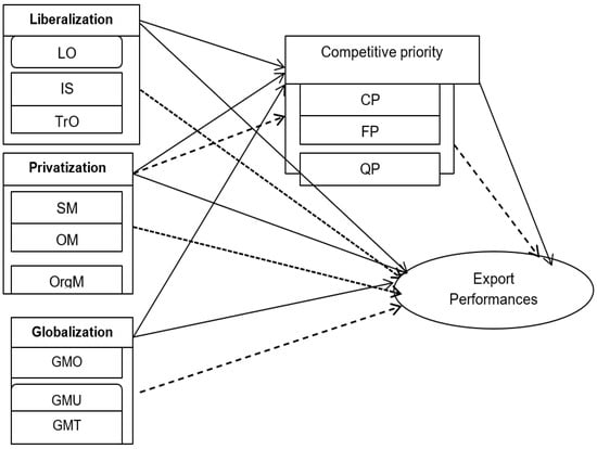 Competitive priority (cost, quality, and flexibility) in the international market experiences stronger export performance under globalization policies.