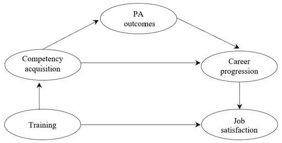 Despite the relevance of this topic, there are still gaps in understanding how various factors interact to influence job satisfaction in public administration. The current study addresses this gap by proposing a sequential mediation model that investigates the role of competency acquisition, PA, and career progression opportunities in the relationship between training and job satisfaction.