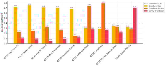 The three emergent factors—structural bias, emotional burden, and safety orientation—reflect core dynamics identified in gender and organizational literature. Structural bias captures the persistence of gendered hierarchies and promotion inequalities (Acker, 1990). Emotional burden aligns with the concept of stereotype threat, wherein female crew members experience heightened stress and performance pressure in male-dominated contexts (Steele, 1997). The safety orientation factor underscores the importance of both physical and psychological safety, particularly in the context of sexual harassment risks and trust in reporting mechanisms. Together, these factors provide an integrated view of the barriers to gender inclusion at sea.