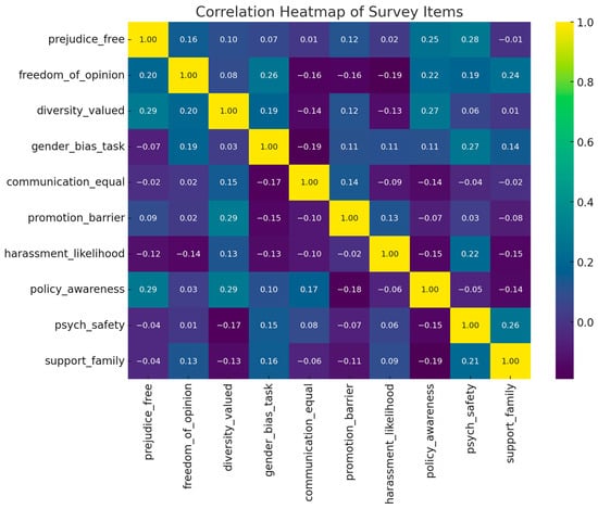 These factors captured thematic clusters of organizational inequality, psychological stressors, and physical safety concerns. The application of EFA was integral to revealing multidimensional patterns in gender perception and allowed for more nuanced policy implications. Factor loadings were cross-validated against thematic groupings derived from qualitative analysis, ensuring both statistical robustness and conceptual clarity. The alignment between empirical dimensions and theoretical constructs affirms the validity of the survey framework (Bryman, 2016).