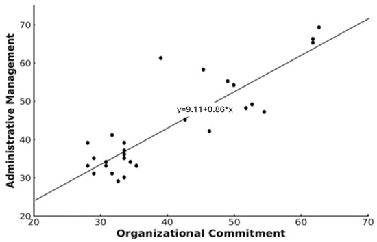 Scatterplot between organizational commitment and administrative management. Note: SPSS 26 results.