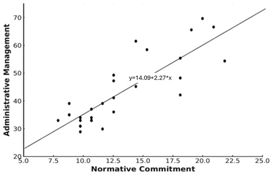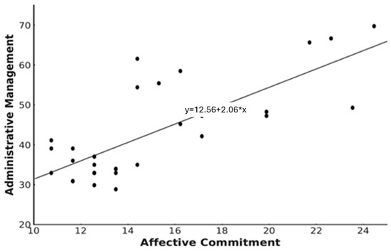 Scatterplot between affective commitment and administrative management. Note: SPSS 26 results.