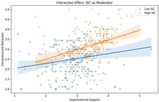 Interaction effect between ISC, organizational support, and intrapreneurial behaviors.