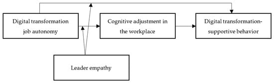 Leader empathy strengthens the indirect effect of digital transformation job autonomy on digital transformation-supportive behavior through cognitive adjustment in the workplace.